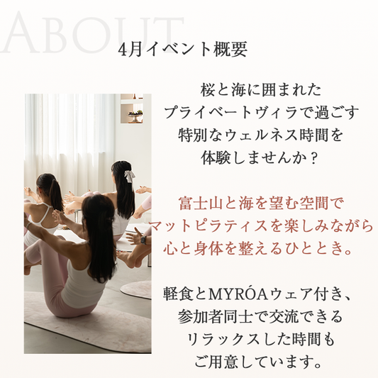 EVENT & Retreat.「Move Beautifully, Live Harmoniously」をスローガンに、ただの運動やイベントにとどまらない、 心から満たされるウェルネス体験 を提供します。