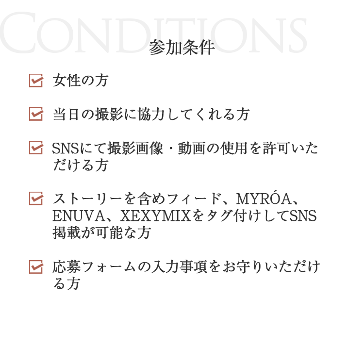 ・MYRÓA, CORELY를 태그 붙이고 SNS 피드 게재가 필수가 됩니다. 신청 기간이 끝나면 SNS 계정 이름을 기입하기 위해 Google 양식을 이메일로 보내드립니다. 대응을 부탁드립니다.