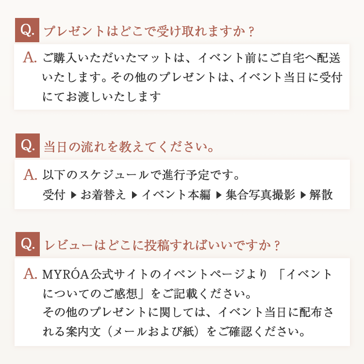・MYRÓA EXERCISE MAT에 관한 주의 사항은 각 상품 페이지를 확인해 주십시오.